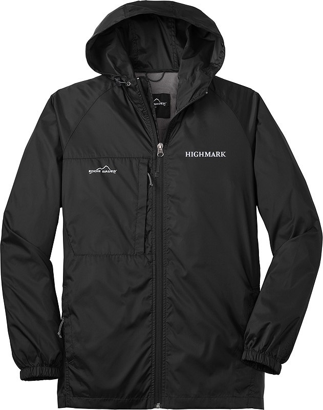 Wind was the inspiration for this compact layer-and it packs down into a pocket, making it easy to carry wherever you go. Hood with drawcord and toggles for adjustability, contrast reverse coil zipper, underarm vents, packable zippered chest pocket, front unzippered pockets, elastic cuffs and an open hem. Contrast Eddie Bauer logo on right chest. Made of 100% nylon.