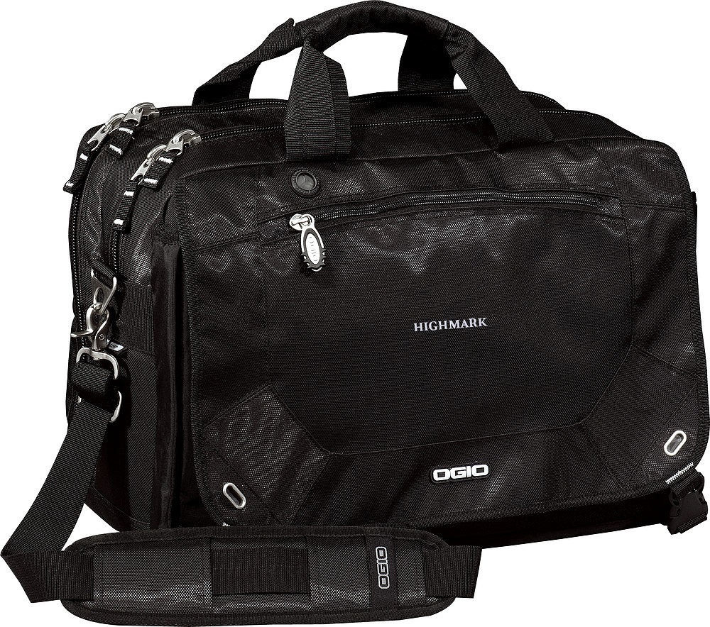 Travel-savvy design ditches the bottomless-pit syndrome to keep multimedia organized and at the ready. Polyester/Nylon. Padded top drop-in laptop sleeve, audio pocket with headphone exit port. Cell phone pocket, adjustable padded shoulder strap, pullman handle attachment sleeve. Organizer panel, palm/caluclator paocket. Internal file separators. Laptop sleeve: 11