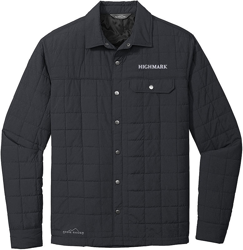 Midweight jacket warmth meets collared shirt style in this shirt jac that blurs the line between the great outdoors and indoors. Snap-front closure and snap cuffs. Drop-in left chest pocket. Contrast Eddie Bauer heat transfer logo on the right hem. Made of 100% polyester fabric and 1.8-ounce, 100% polyester fill. Water-resistant with a PU coating.